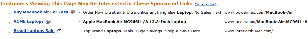 However, search partner ads aren’t always shown in response to an actual search query typed in by a user. For example, pages within the Business.com directory sometimes include ads. As do some category pages on eBay, Amazon, Target.com, Shopping.com, and many more. Even product detail pages can include search partner ads.