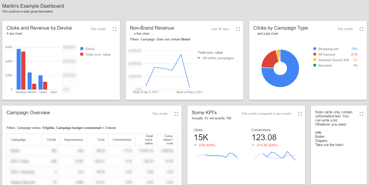 However, dashboards can do more than to provide a quick overview. Instead, they can be seen as a somewhat powerful reporting tool. Smaller agencies might some day use this tool to do all of their AdWords reporting, as might some inhouse people.