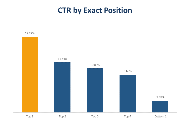 This clearly shows that the first top position has a much higher click rate than all the others. The differences between the other top positions are much smaller.
