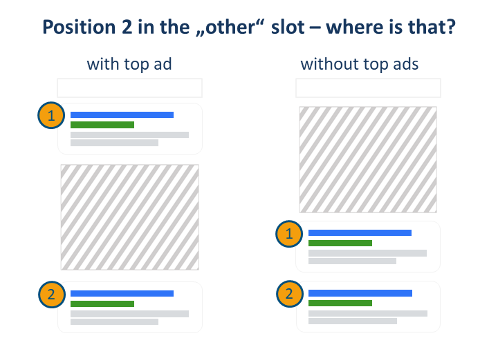 Especially when going to full numbers, a worse average placement leads to better click-through rates. This indicates that the average position data is misleading. Normally we would still have to be content with that if there wasn’t another little trick.