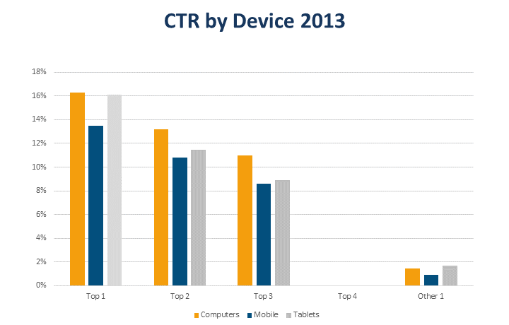 At that time, mobile click-through rates were still well below those of the other devices, while desktop computers performed better.