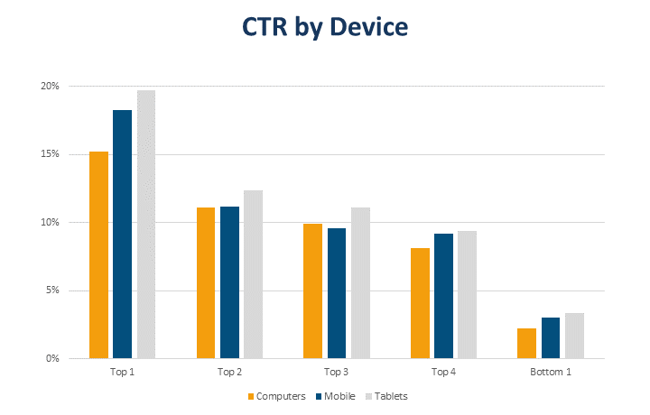 A simple evaluation of click-through rate by position and device is summarized in the following chart: